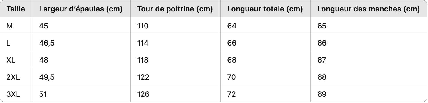 Pour t’aider à choisir la bonne taille, nous te recommandons vivement de consulter le tableau des tailles de chaque vêtement. Tu trouveras un lien vers le tableau des tailles en haut de la liste des tailles sur chaque page produit. Nous te conseillons de baser ton choix sur notre tableau des tailles et nos recommandations afin de sélectionner la taille qui te convient le mieux. Cela permet d’éviter les retours inutiles et garantit ta satisfaction.