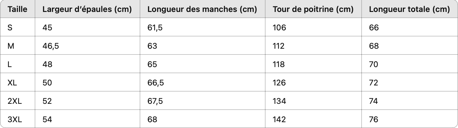 Pour t’aider à choisir la bonne taille, nous te recommandons vivement de consulter le tableau des tailles de chaque vêtement. Tu trouveras un lien vers le tableau des tailles en haut de la liste des tailles sur chaque page produit. Nous te conseillons de baser ton choix sur notre tableau des tailles et nos recommandations afin de sélectionner la taille qui te convient le mieux. Cela permet d’éviter les retours inutiles et garantit ta satisfaction.
