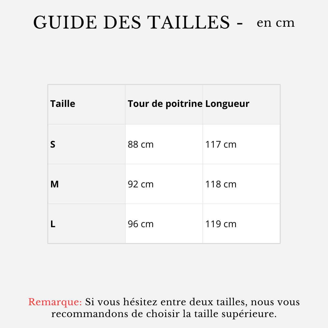Remarque: Si vous hésitez entre deux tailles, nous vous recommandons de choisir la taille supérieure.