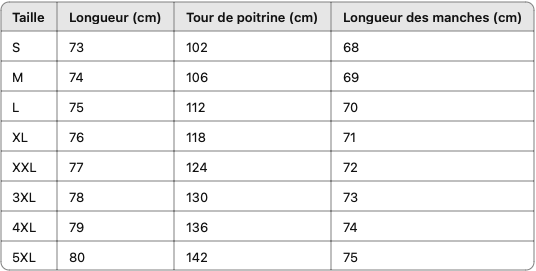 Pour t’aider à choisir la bonne taille, nous te recommandons vivement de consulter le tableau des tailles de chaque vêtement. Tu trouveras un lien vers le tableau des tailles en haut de la liste des tailles sur chaque page produit. Nous te conseillons de baser ton choix sur notre tableau des tailles et nos recommandations afin de sélectionner la taille qui te convient le mieux. Cela permet d’éviter les retours inutiles et garantit ta satisfaction.