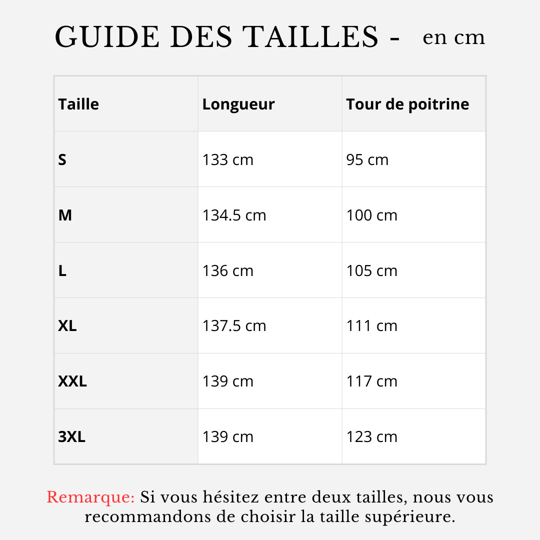 Remarque: Si vous hésitez entre deux tailles, nous vous recommandons de choisir la taille supérieure.