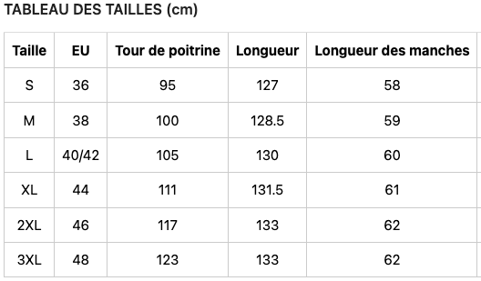 Consulte le tableau des tailles indiqué sur chaque page produit. Baser ton choix sur nos recommandations permet d’éviter les retours inutiles et garantit ta satisfaction.